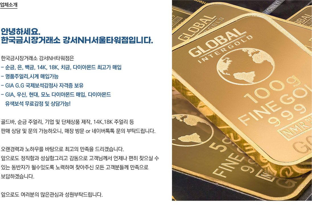 한국금시장거래소 강서NH서울타워점에 오신걸 환영합니다.